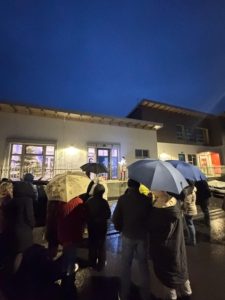 Im Anschluss versammelten sich alle vor dem 6. Adventsfenster am DGH. Marlies Reif las passend zum gestalteten Advents-Fenster die Geschichte „Einer der Geringsten“ vor. Diese Geschichte gab Impulse zu adventlichen Themen wie Verständnis, Mitmenschlichkeit, Nächstenliebe, die aber immer gelten sollten, nicht nur in der Advents- und Weihnachtszeit.