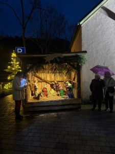Kurz nach 16.30 Uhr versammelten sich die Gäste an der neuen Dorfkrippe. Dort las Marlies Reif zur Einstimmung auf den Advent Gedanken zur Adventszeit vor.