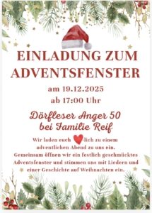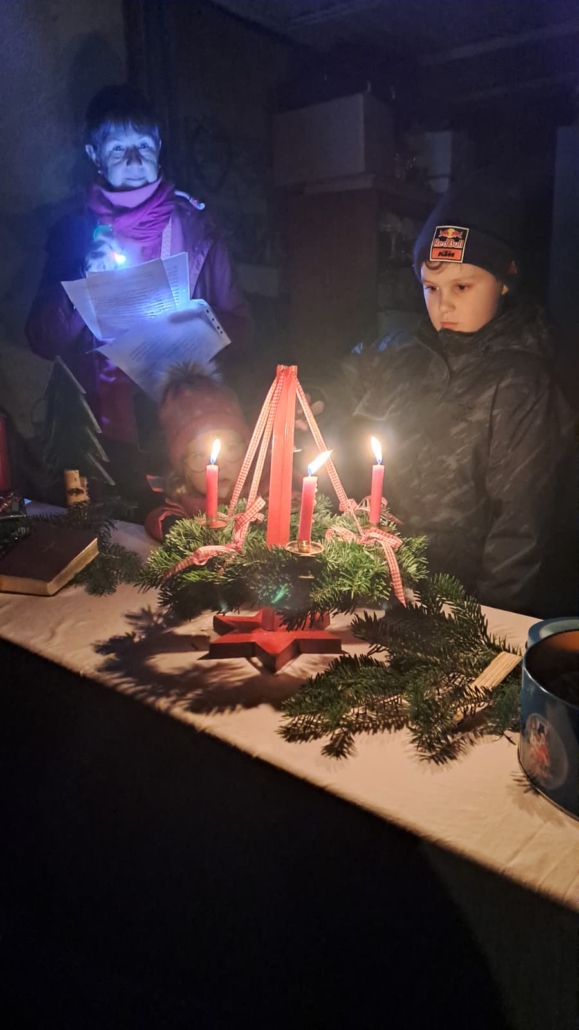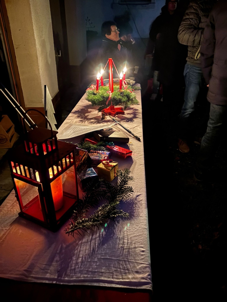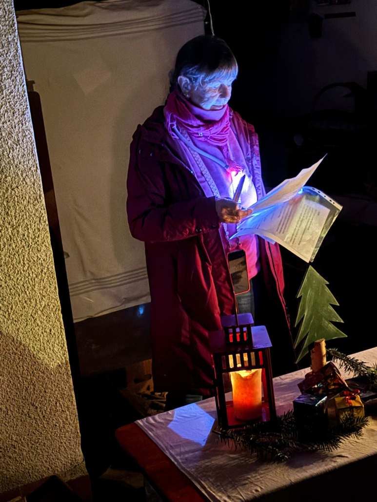 Marlies Reif las passend zum gestalteten Advents-Fenster die Geschichte „Einer der Geringsten“ vor. Diese Geschichte gab Impulse zu adventlichen Themen wie Verständnis, Mitmenschlichkeit, Nächstenliebe, die aber immer gelten sollten, nicht nur in der Advents- und Weihnachtszeit.