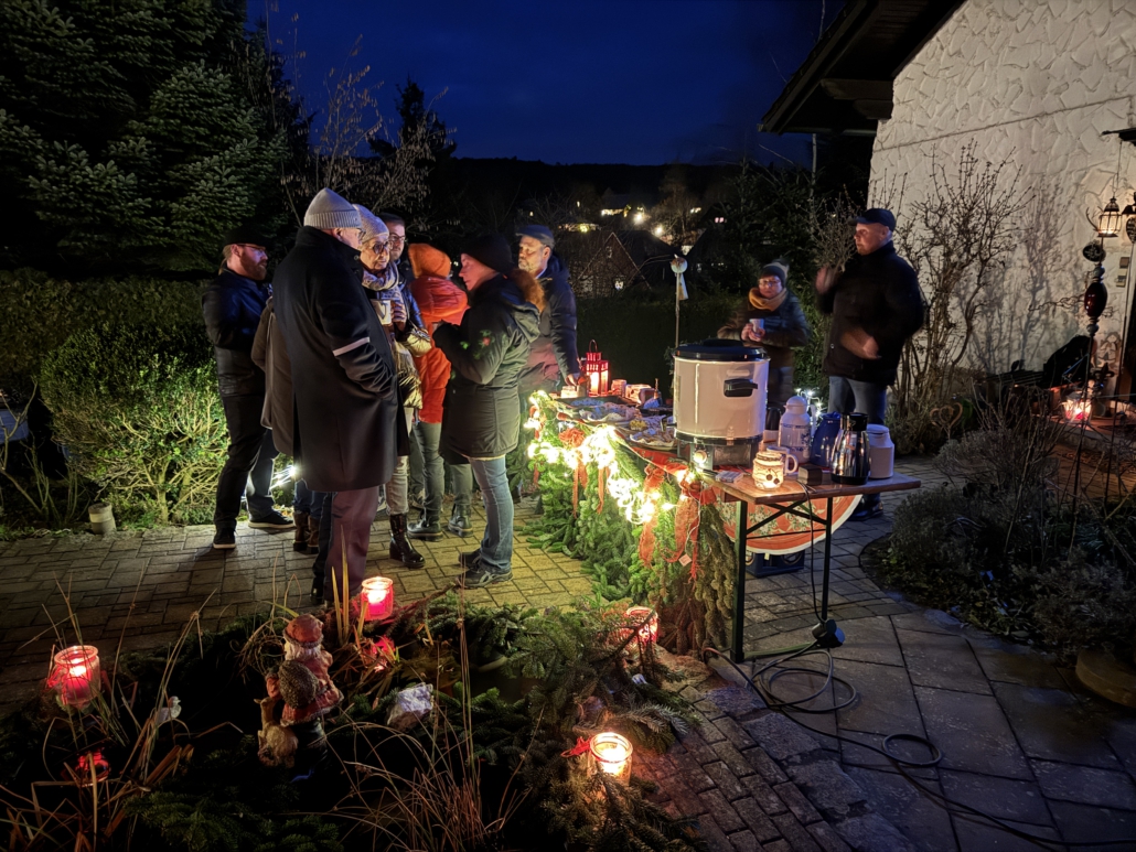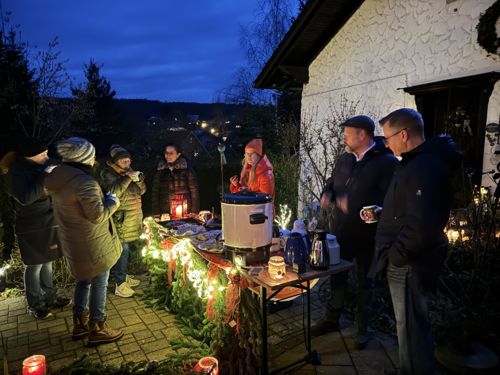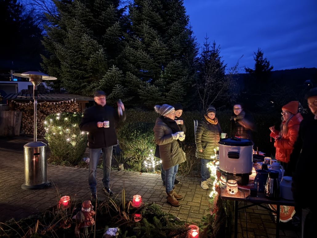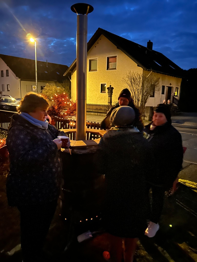 Bei selbstgebackenen Kuchen und Plätzchen (Heimatverein), leckeren Getränken (Clubfreunde) und Bratwürsten und Steaks (Freiwillige Feuerwehr Dörfles) saßen viele Dörfleser zusammen und ließen es sich gut gehen.