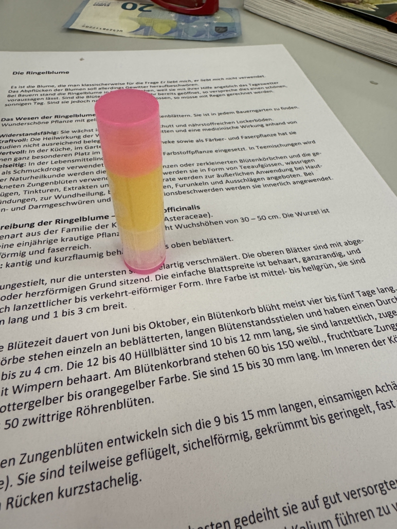 Im Anschluss konnte man sich eine Tinktur herstellen. Evi rührte für uns alle noch ein Lippenbalsam für wintermüde Lippen zusammen.