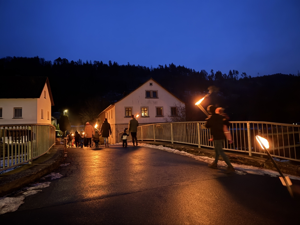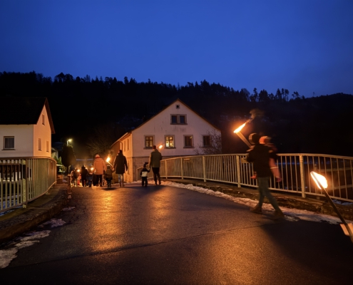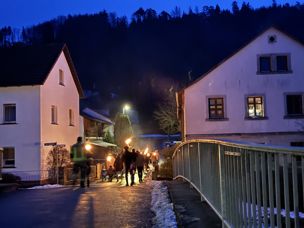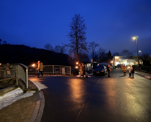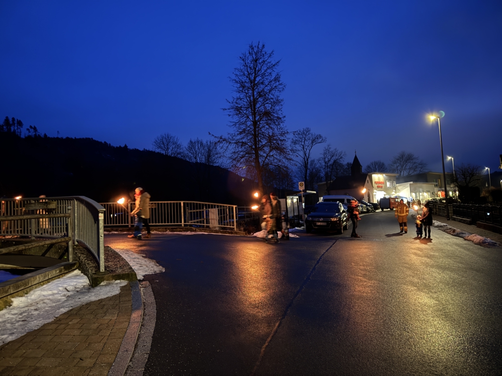 Ab 17 Uhr starteten die Jugendlichen mit den Lösch- Minis mit einem Fackelzug zum Bolzplatz.