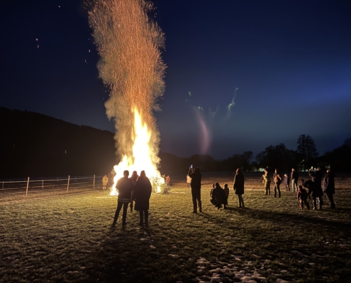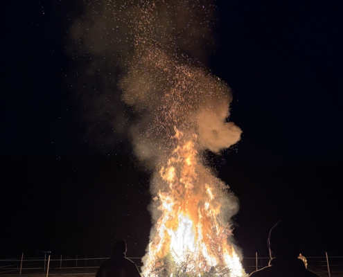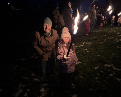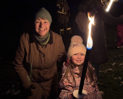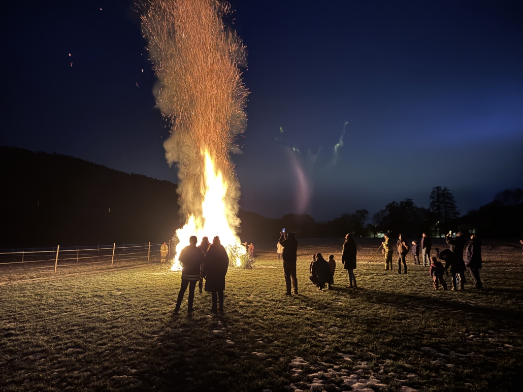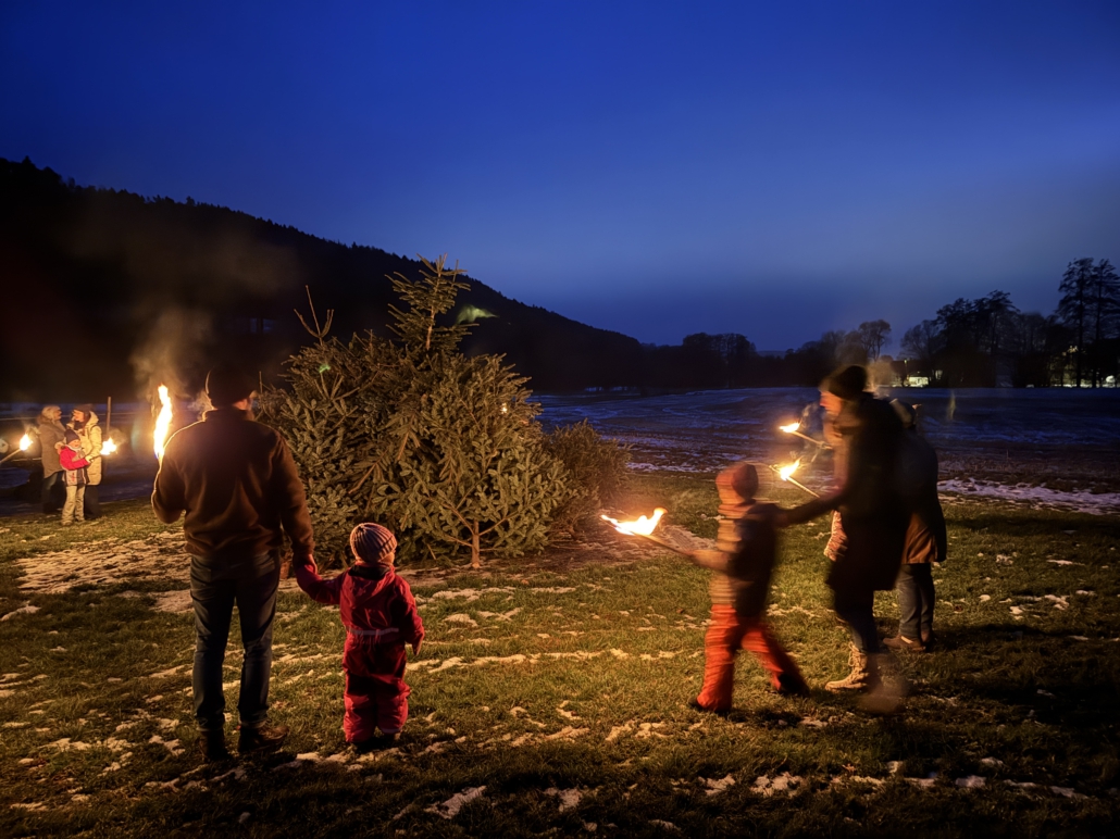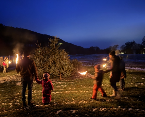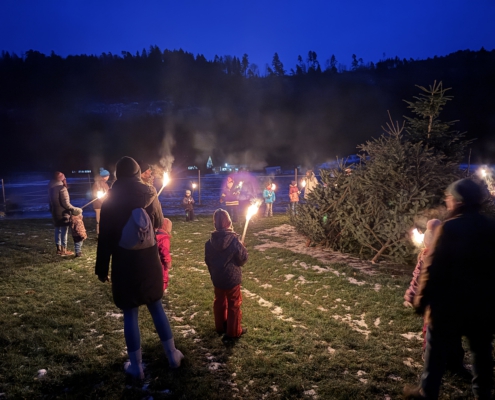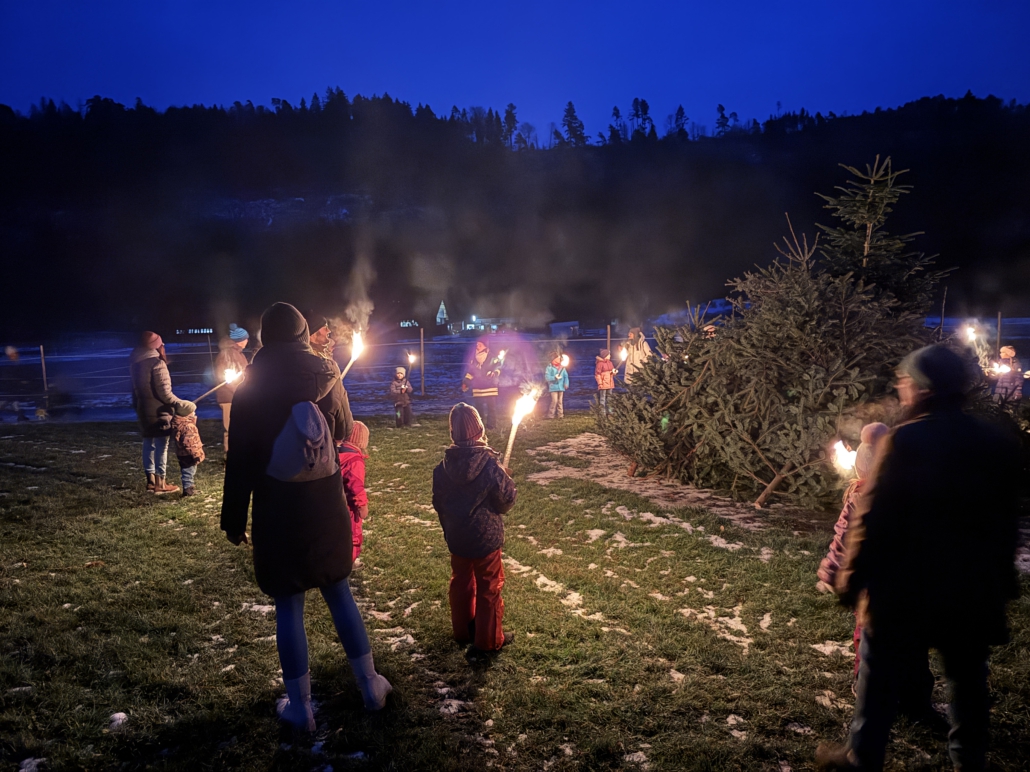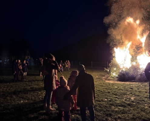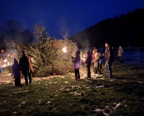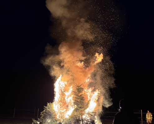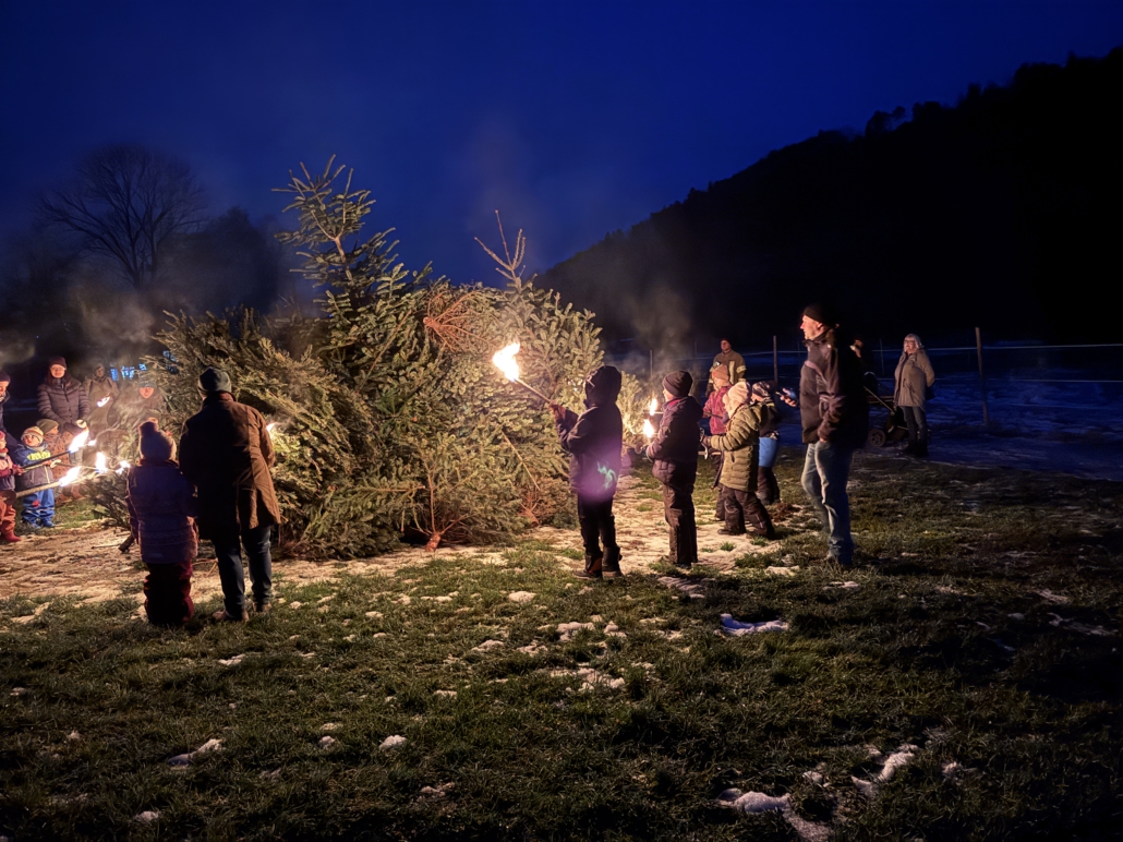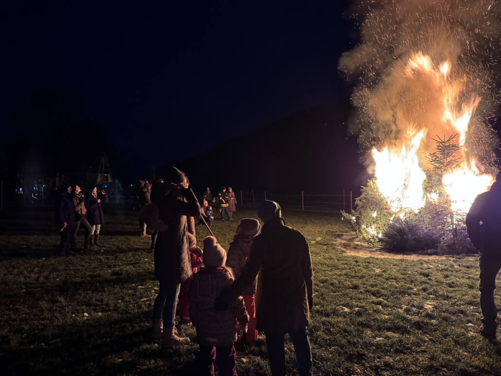 Unter Aufsicht von Lisa Gehring durften zuerst die Minis, danach die älteren Kinder ihre Fackel zu den aufgeschichteten Christbäumen legen.