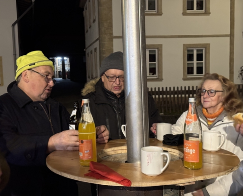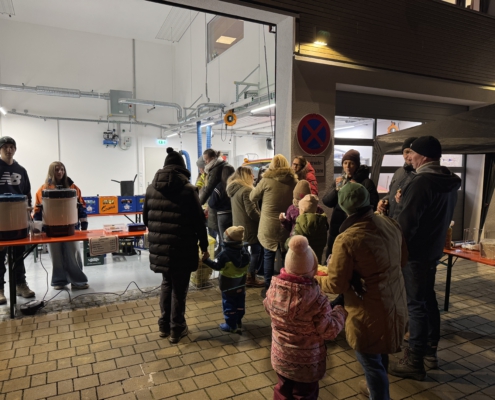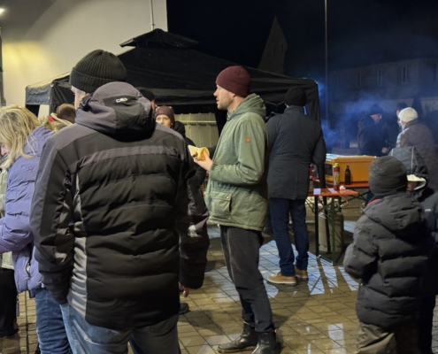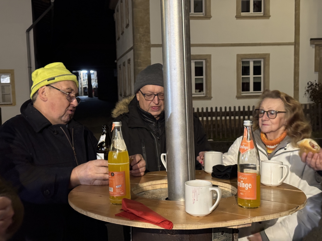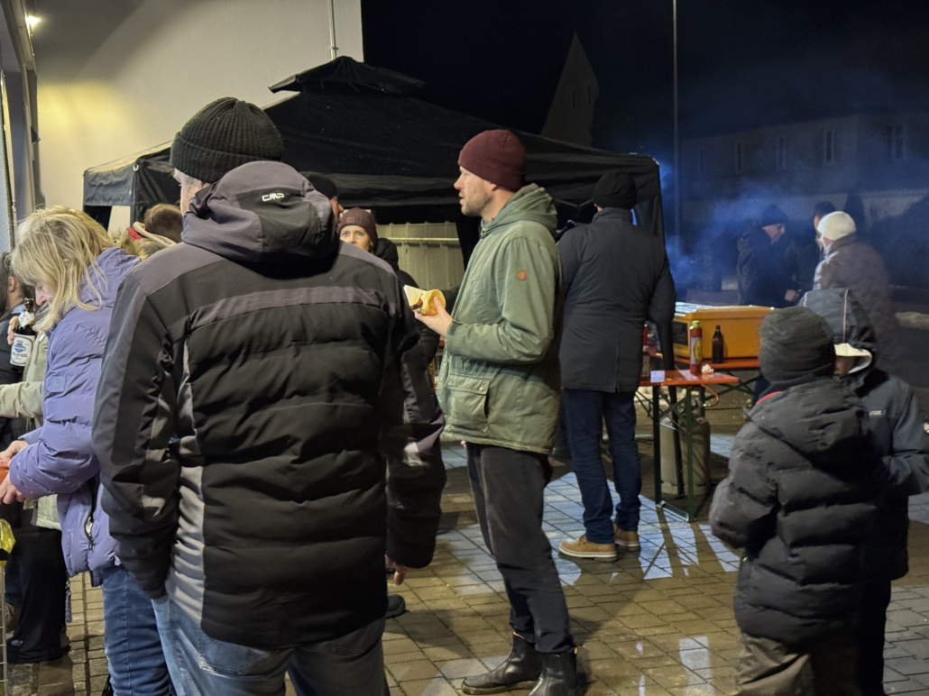 Bei Steaks, Bratwürsten, heißen und kalten Getränken wärmte man sich an der Feuerschale und den Kanonenöfen auf.
