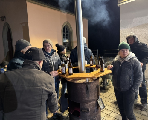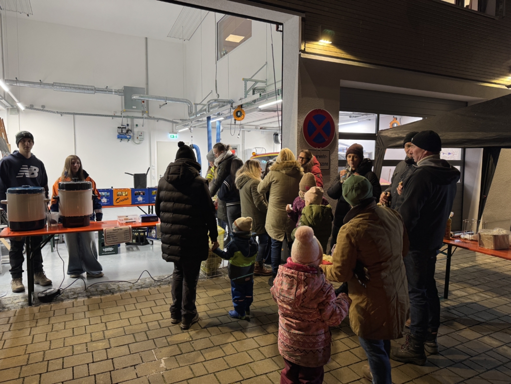 Nach getaner Arbeit gab es ein gemütliches Beisammensein vor dem Feuerwehrhaus.
