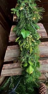 Zum Schluss lud uns Evi in den Hof des Fischer-Weiß Anwesens ein. Dort standen wir noch länger an der Feuerschale zusammen. Wer mochte, konnte sich von Evi mit eigens von ihr zusammengestellten Kräuterbuschen „räuchern“ lassen, um schlechte Energie zu vertreiben und Platz für neue Energien zu schaffen.