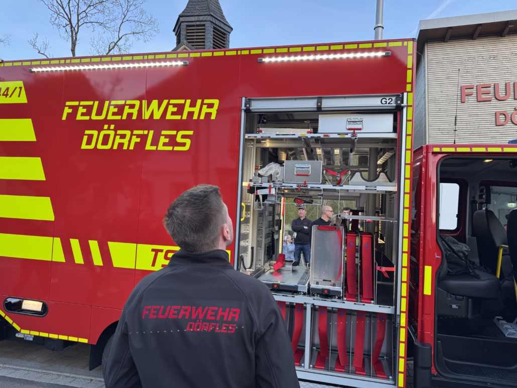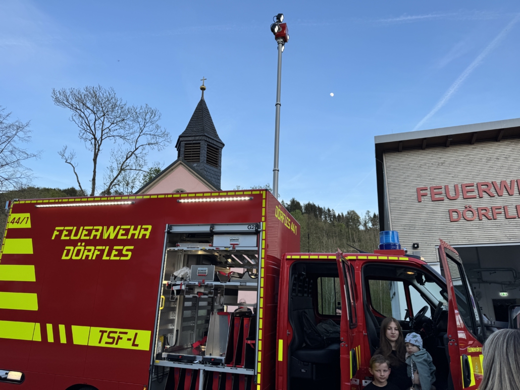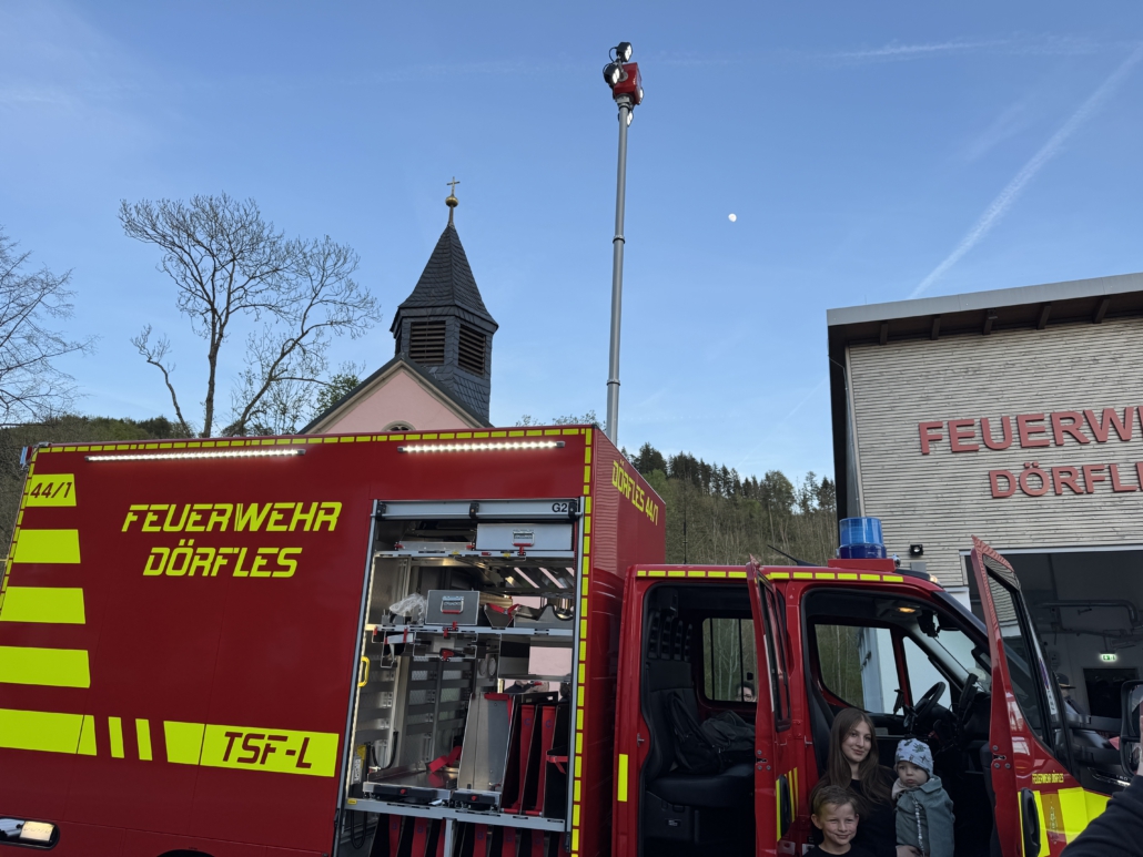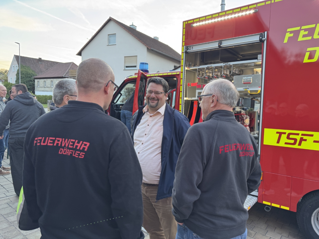 Gespannt warteten viele Dörfleser Bürger auf die Ankunft des neuen Feuerwehr-Fahrzeugs, das eine Delegation der FFW Dörfles heute von Görlitz nach Dörfles überführt hat. Damit die Wartezeit nicht zu lange wurde, gab es ab 18.30 Uhr für alle Besucher kühle Getränke und Bratwürste vom Grill vor dem Feuerwehrhaus.